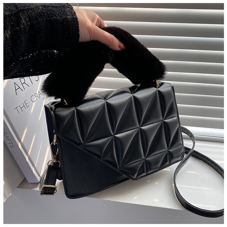 Premium Quilted Fur Flap Sling Bag