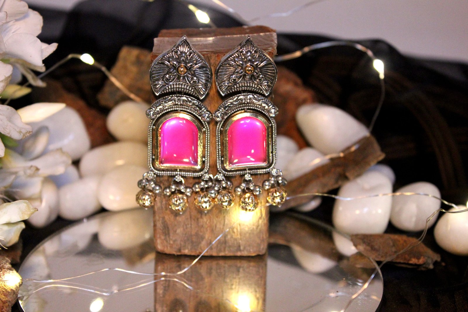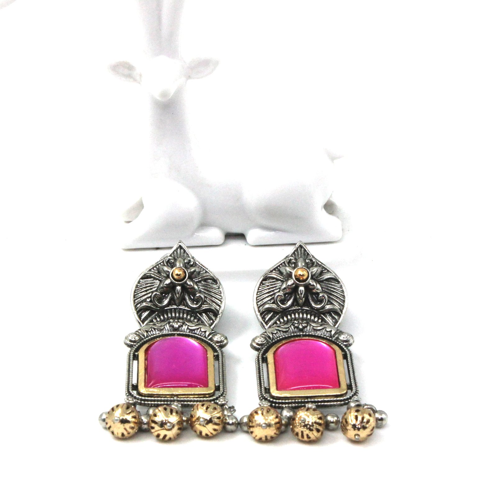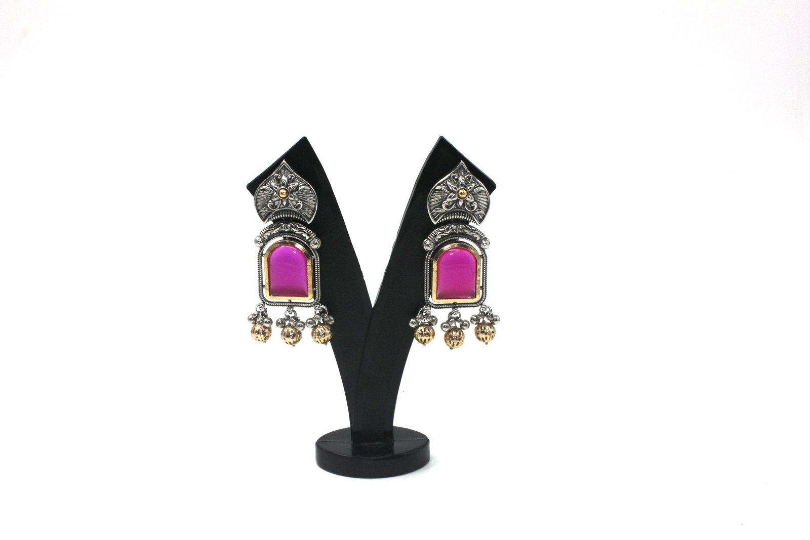 STONE STUDDED SILVER JHUMKAS