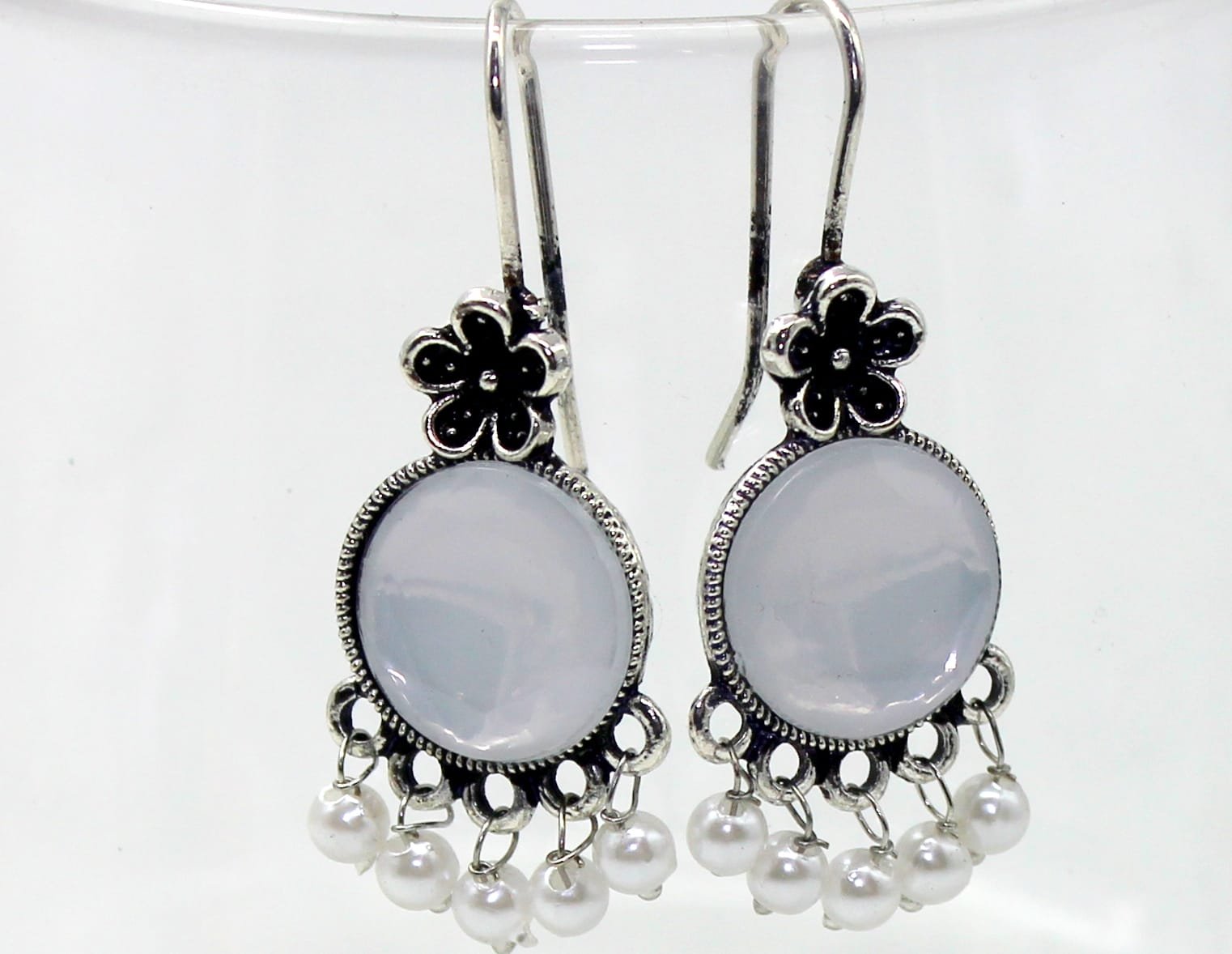 ARTIFICIAL STONE  STUDDED & BEADED  CONTEMPORARY DROP  EARINGS